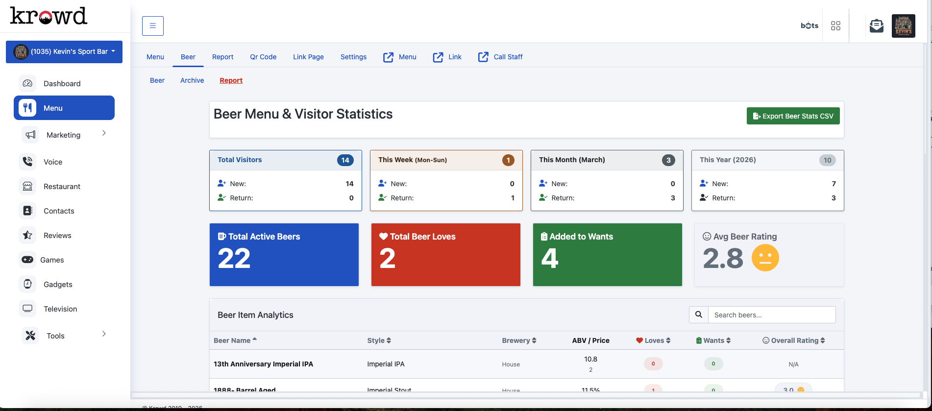All this guest interaction is reported directly to your dashboard. Know exactly what's trending and what's sitting in the keg.